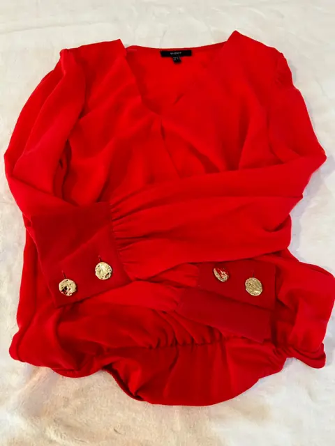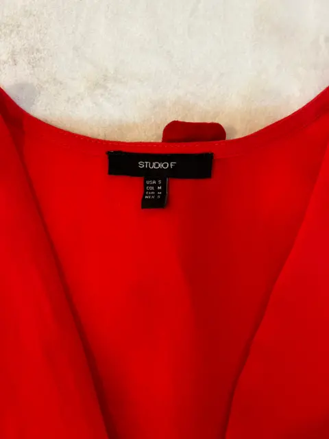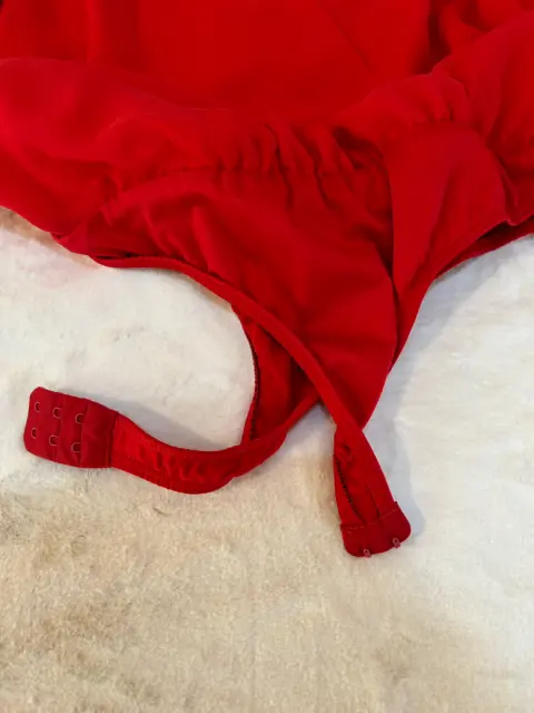 Bonita blusa, color rojo carmín, se abrocha en la entrepierna, tipo body, solo la usé un rato, está intacta y hermosa, talla M