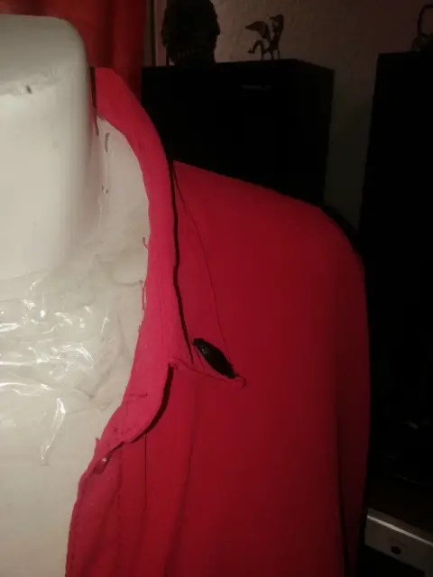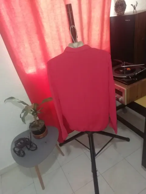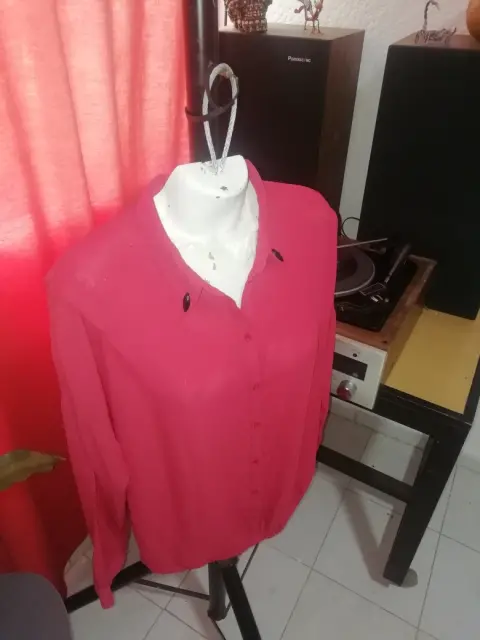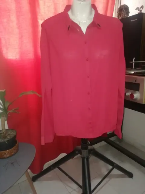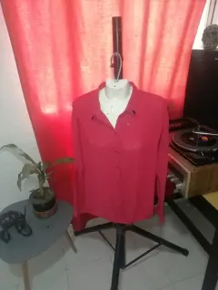 Blusa Roja Bershka. Elegante y transparente, con pedrería en el cuello 🖤. Con resorte bajo y botones frontales. Ligera y cómoda 🍷🌹🍎