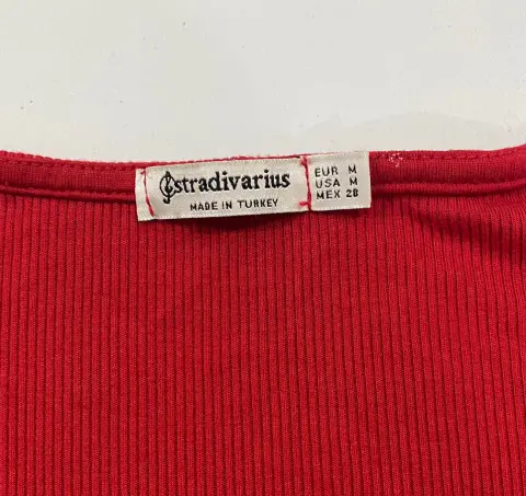 Blusa roja cuello V con poco de strech y detalle de encaje en las mangas marca stradivarius, talla M.
