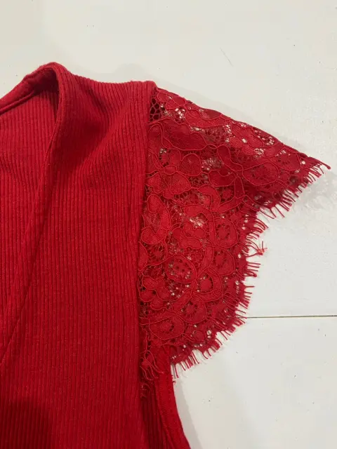 Blusa roja con encaje en las mangas. Blusa roja cuello V con poco de strech y detalle de encaje en las mangas marca stradivarius, talla M.