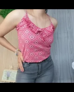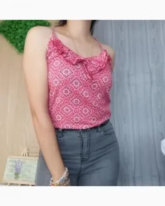 Hermosa blusa roja con estampado blancos como de paño , con bonito olancito enfrente , tela delgada y fresca 😍😍😍😍