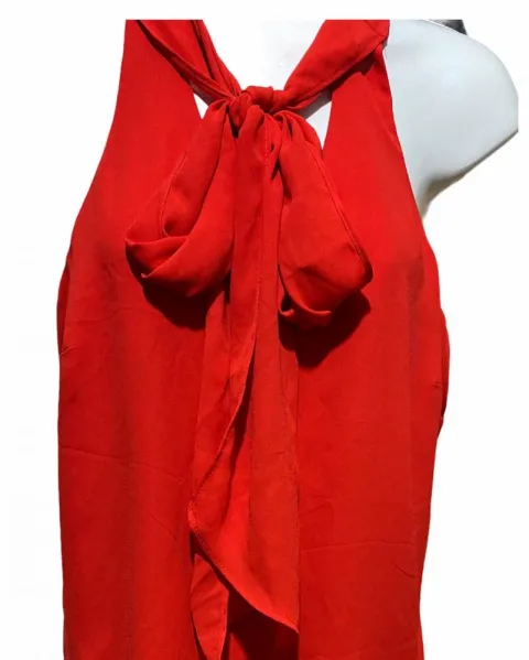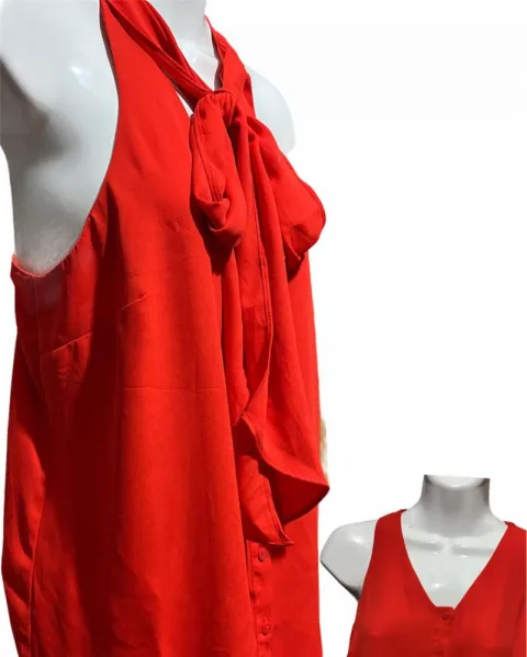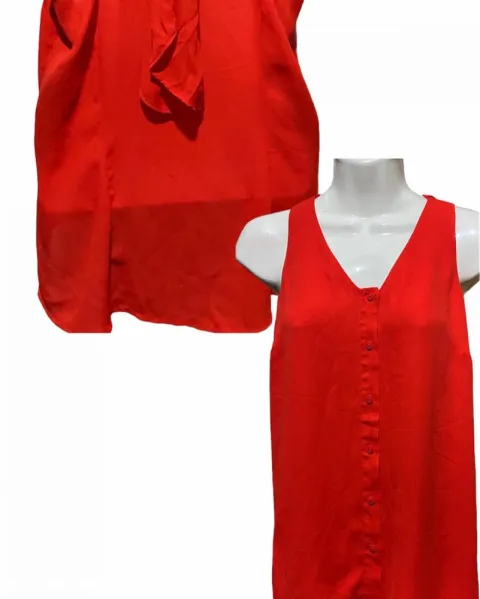Blusa roja, ligera y fresca. Sin mangas, con listón ajustable y cambiable, botones al frente, tela ligera, sin mangas, color roja. Talla S (chica).