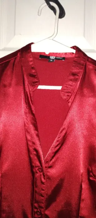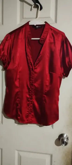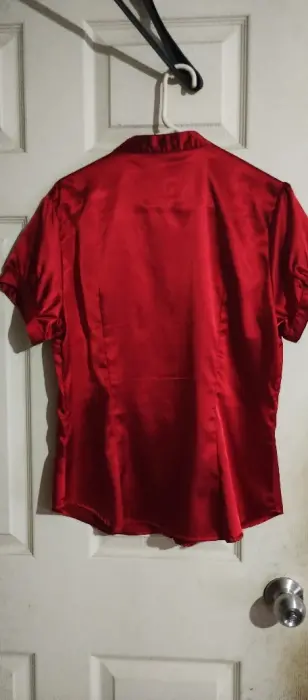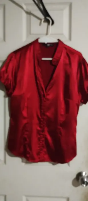 Bella blusa tipo satín en color rojo, ideal para irte de fiesta. Además pueden combinarla tanto con falda como con pantalón y por las pinzas que tiene te estiliza la figura ..