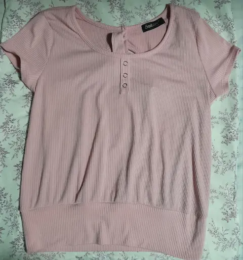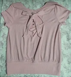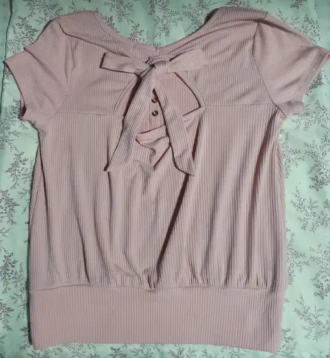 Blusa rosa, con botones al frente , manga corta , trae una cinta que puede hacerse un moño, talle corto, talla chica