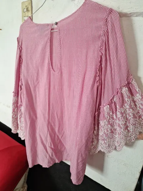 Blusa rosa rayada con blanco, talla L queda a M, no estira