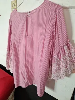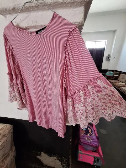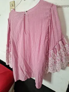 Blusa Rosa con raya blanca. Blusa rosa rayada con blanco, talla L queda a M, no estira