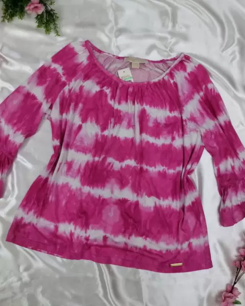 Blusa rosa de manga ¾ Michael Kors. La tela es ligerita▪️Axila a axila: 55cm.▪️Lsrgo: 60cm.Estira bastante, le va bien a S/M