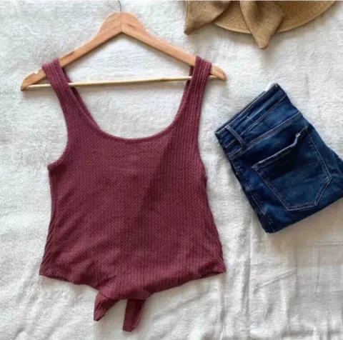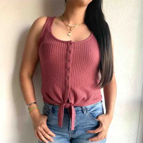 Blusa expressTalla Xs pero es amplia le va bien a una SColor rosa fuerteDe tirantes, broches funcionales y completos y anudada de al frenteMedidasAncho 42 cmContorno 84 cmLargo 50 cmEstiraJC032