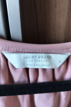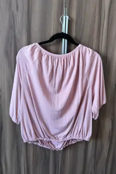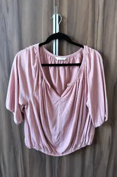 Blusa rosa Lucky Brand. La manga llega por arriba del codo. La blusa es corta, llega a la cintura.