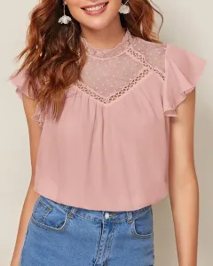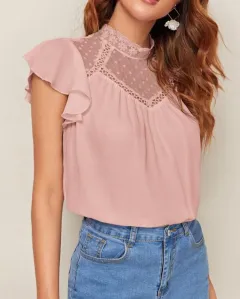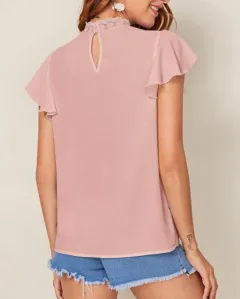 Blusa de encaje y manga corta color palo de rosa marca Shein.