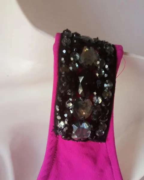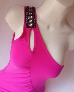 Blusa rosa de un hombro con un detalle muy sexy en el hombr, es larga