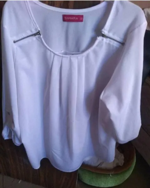 Blusa Sahara blanca. Blusa Sahara blancaManga 3/4Cierres en las mangasEscote redondo