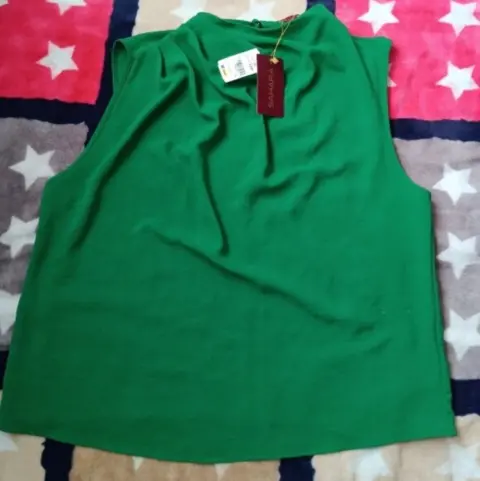 Blusa Sáhara sin mangas para dama. Su tela es muy fresca, Es completamente lisa ,de atrás trae su broche por el lado del cuello ,no tiene mangas , completamente nueva a estrenar con etiqueta
