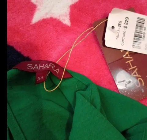 Su tela es muy fresca, Es completamente lisa ,de atrás trae su broche por el lado del cuello ,no tiene mangas , completamente nueva a estrenar con etiqueta