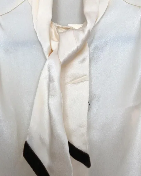 Súper súper padre blusita en tono perla, satinada suave al tacto y con corbatín con detalles en terciopelo.