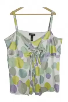 Blusa satinada tirantes con motas colores, Talla XXL, tiene moño en el escote, tiene forro y cierre invisible al costado, súper fresca ideal para primavera verano. Súper linda