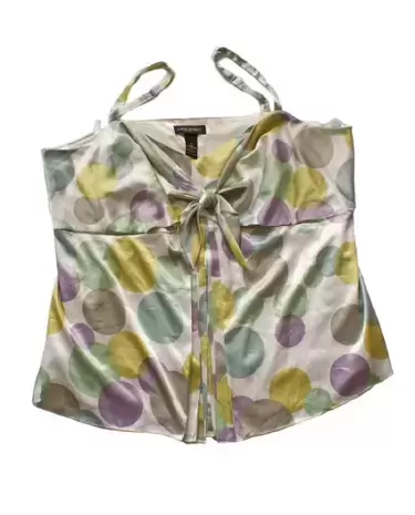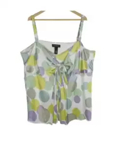 Blusa satinada de bolas de colores Talla XXL. Blusa satinada tirantes con motas colores, Talla XXL, tiene moño en el escote, tiene forro y cierre invisible al costado, súper fresca ideal para primavera verano. Súper linda