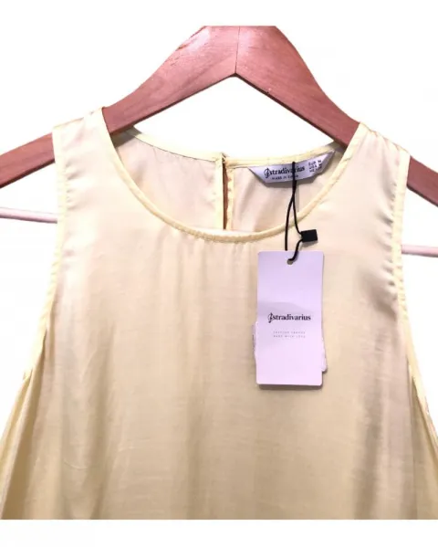 Blusa sin mangas en tela amarilla tipo satinado talle M de Stradivarius, está súper linda seguro te quedará perfecta!!!🤩