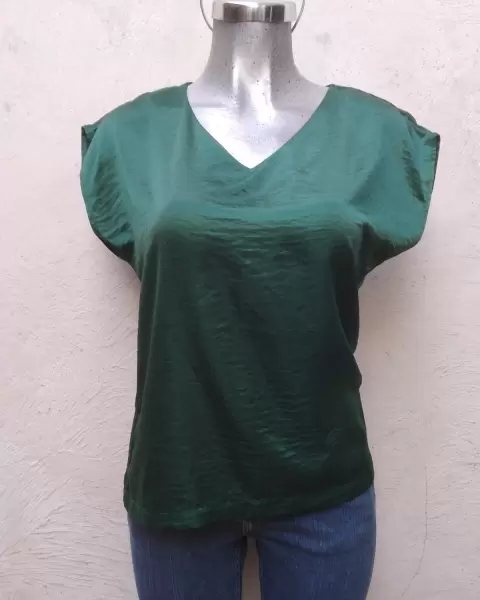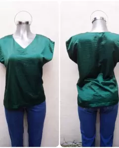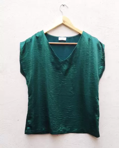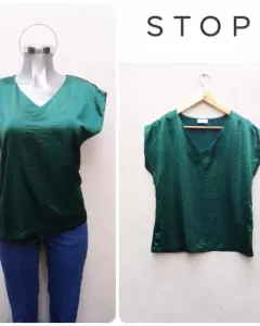 Blusa satinada verde. Hermosa blusa verde botella marca stop en talla L tiene presillas a los costados como para poner cordon o liston para ajustar no cuenta con dicha pieza sin detalles MEDIDAS ziza a ziza 55cm largo 61cm ligeramente mas larga de atras no estira tambien queda a talla M