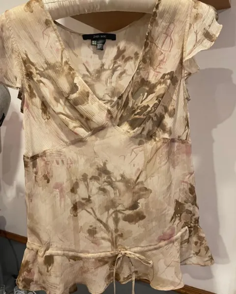 Blusa seda estampada. Blusa de seda delgada estampada , escote en V , queda mejor a talla chica , ajuste en cintura ✨😉