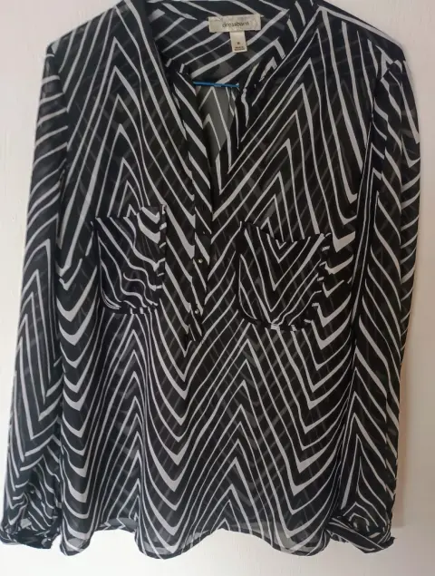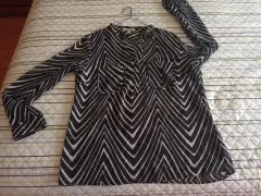 Blusa semitransparente negra con blanco. Hermosa blusa seminueva TM (amplia) usada sólo dos veces, en perfectas condiciones, ideal para vestir formalmente o casual.