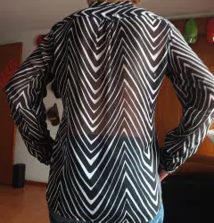 Blusa semitransparente negra con blanco