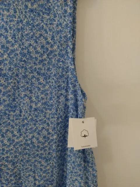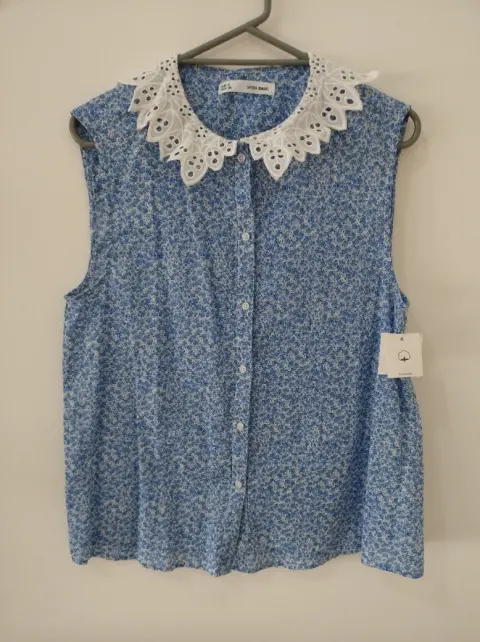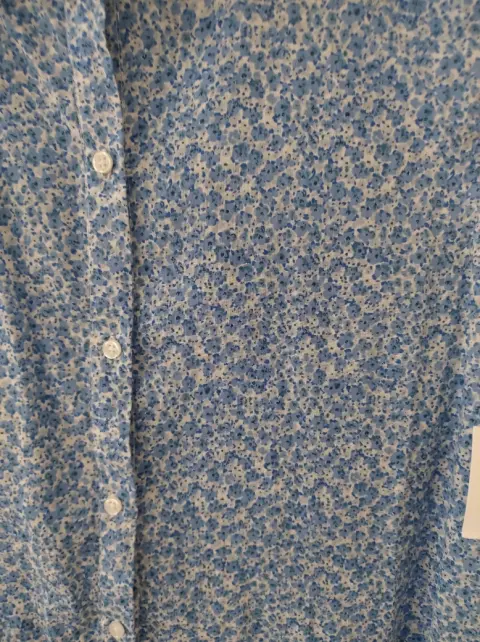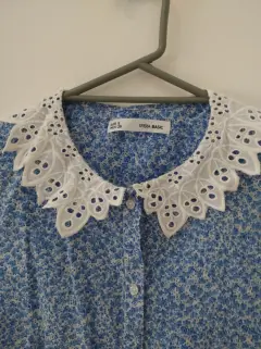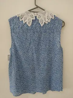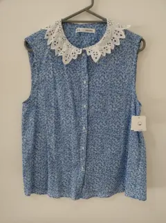 Linda blusa azul con blanco y un coqueto olan blanco, marca sfera nueva con etiqueta, sin detalles.