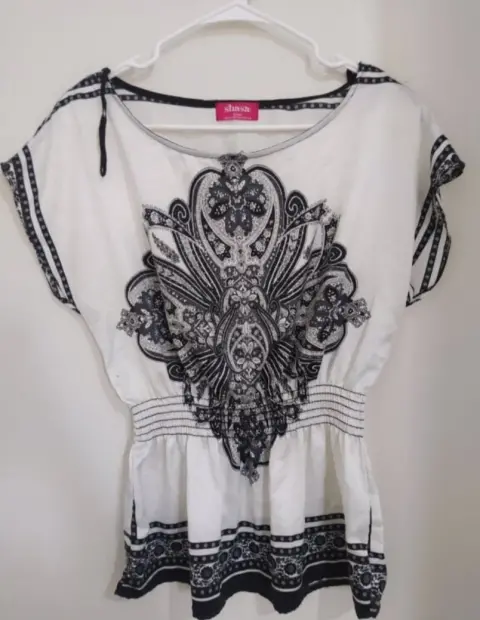 Blusa Shasa blanco con negro. Blusa Shasa blanco con negro Talla M