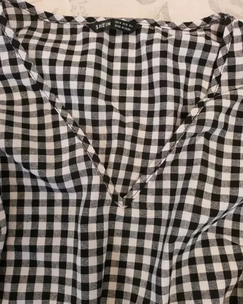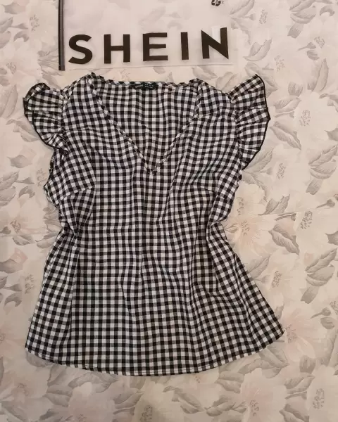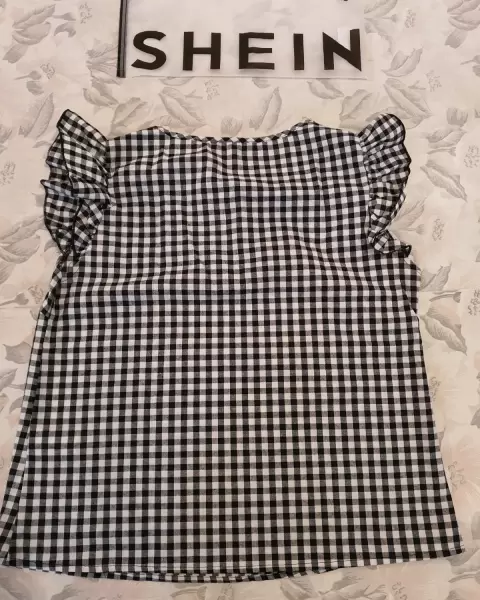 Blusa shein. Bonita blusa en cuadros blanco y negro Con olanes en las mangas que hacen lucir muy bonita