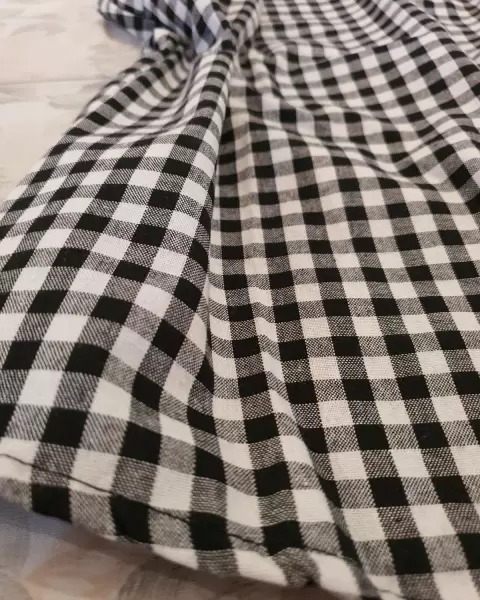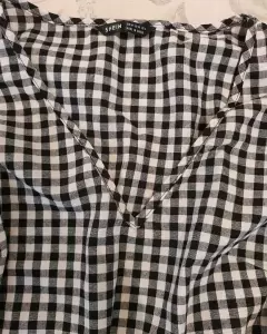 Bonita blusa en cuadros blanco y negro Con olanes en las mangas que hacen lucir muy bonita