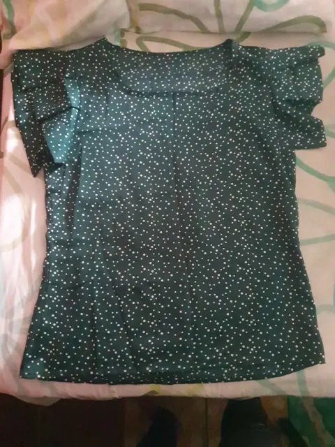 Blusa shein. Sin detalles solo una puesta talla s color verde bandera con lunares blanco arma muy bonito