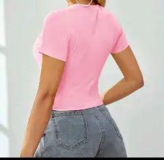 Preciosa blusa Shein nueva XLBlusa rosa con escote transparecia hermosa tela algodón