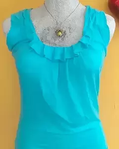 Blusa de tela algodon muy ligera y cómoda cuello redondo , sin manga talla xs , marca mk.