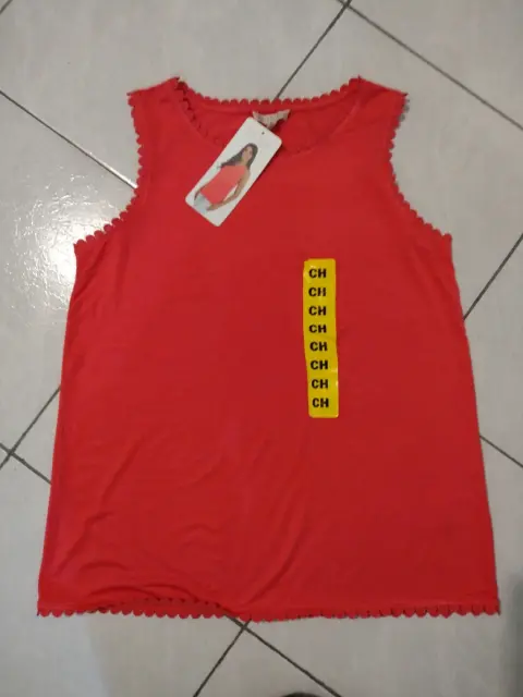 Blusa sin manga color rosa, nueva con etiqueta, con encaje tejido al rededor