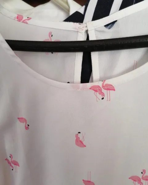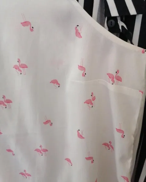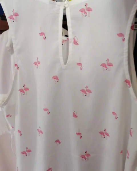 Linda blusa sin mangas color blanca con cisnes esta en excelentes condiciones es talla L para tallas mas chicas queda perfecto de la axila se ve el desgaste pero por el desodorante