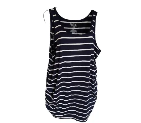 Blusa sin manga maternidad. 👚 blusa maternidad Color azul marino Rayada con blancoElevador a los costadosMarca time & truTalla XL
