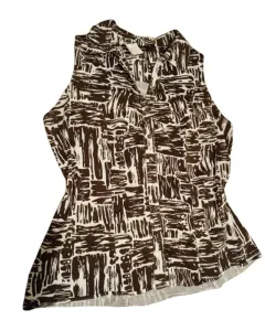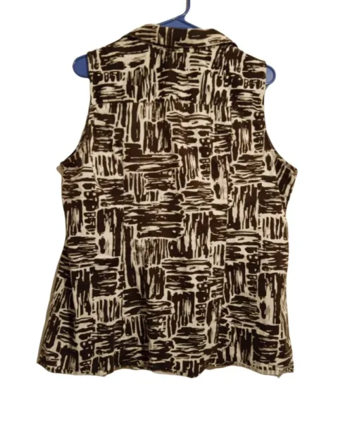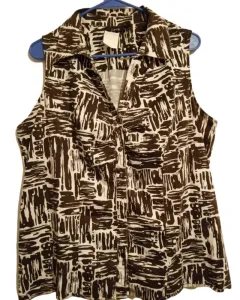 Blusa sin manga xl. Blusa de algodón strech. Es tela firme y gruesa. Es blanca con café oscuro. Cuello SPORT y detalle de botones y plisado al frente.