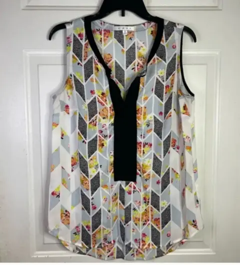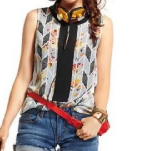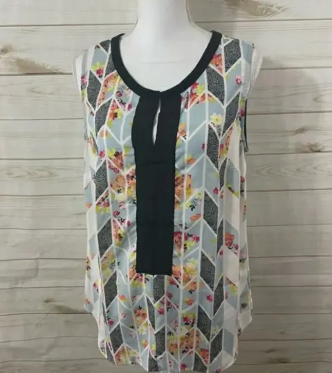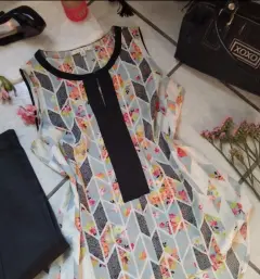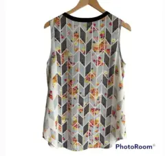 Blusa sin mangas. Es fresca y ligera, para mi gusto es amplia, talla M y también queda a L.NUEVA (sin la etiqueta)Tela 100% polyéster y sin strech. Colores combinables y lindos.De axila a axila: 51 cm,Largo de la blusa: 70 y 78 cm (parte corta y larga de la misma).Sin detalles y en perfecto estado.