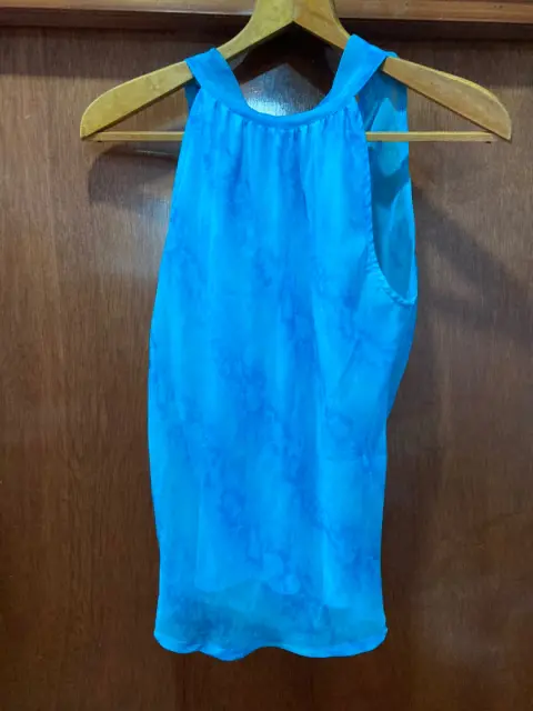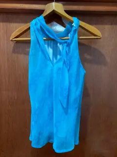 Blusa sin mangas. Blusa de color azul semi estampada en color azul talla 5