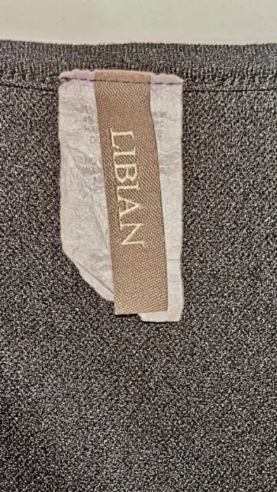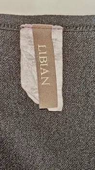 Esta blusa es de tela formal, color negro, cuello redondo, pinzas en la cintura, marca libian , talla L.sin ningún detalle