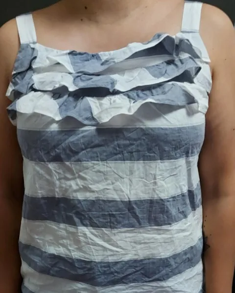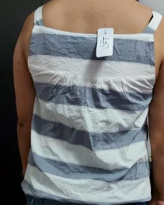Blusa sin mangas de rayas i. Linda y fresca blusa gris con blanco, tiene olanes al frente esta super cómoda