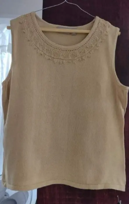 Blusa sin mangas formal. 🏵️Bonita Blusa sin mangas formal 🏵️Color beige 🏵️Marca Croft & Barrow🏵️Talla XL🏵️Cuello redondo🏵️Adornos en el cuello 🏵️Puesta 2 veces 👉NO ME CIERRO A OFERTAS..! Y realizó el envío lo más rápido posible si te gusta 1 o más prendas te puedo poner todo en el mismo envío😉
