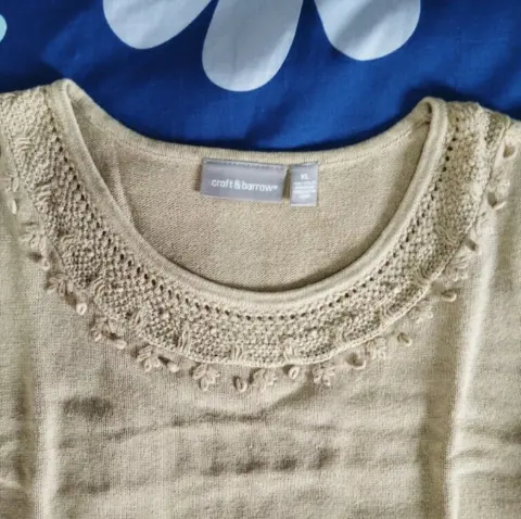 🏵️Bonita Blusa sin mangas formal 🏵️Color beige 🏵️Marca Croft & Barrow🏵️Talla XL🏵️Cuello redondo🏵️Adornos en el cuello 🏵️Puesta 2 veces 👉NO ME CIERRO A OFERTAS..! Y realizó el envío lo más rápido posible si te gusta 1 o más prendas te puedo poner todo en el mismo envío😉