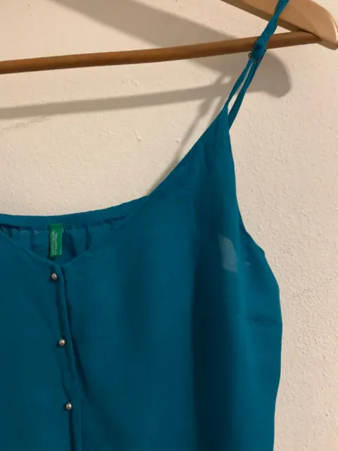 Blusa sisada Benetton. Medidas: Ancho de pecho 55 cmsLargo de axila 19 cmsTira de hombro 11 cmsLargo delantero 51 cms