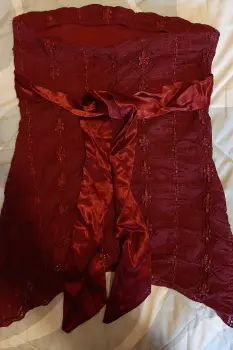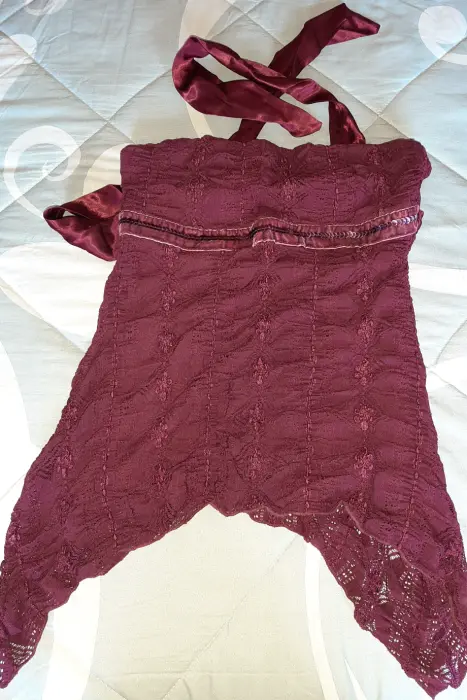 Blusa strapless de encaje color vino.Ideal para esta época de calor.Corte asimétrico.Largo 53 cms.Ajuste perfecto a la cintura.Modela tu figura.