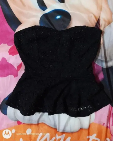 Blusa strapless Shasa. Hermosa blusa estraple try silicón en la parte del pecho contiene su relleno en la parte de abajo trae como tipo olán se ve muy bonito, los detalles se ven en las fotos ya que viene con pelusita qué se le fue haciendo cuando se lavaba Pero eso no afecta su uso se nota en las fotos
