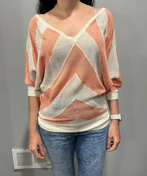 Blusa suéter cuello v. Blusa suéter cuello en v y espalda en vManga 3/4Dice talla xs pero viene amplia como para talla mDe axila a axila tiene 60cmDel talle de abajo 30 cm