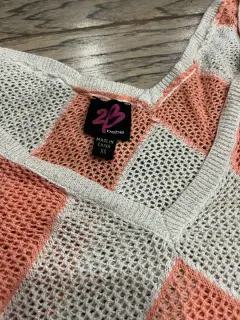 Blusa suéter cuello en v y espalda en vManga 3/4Dice talla xs pero viene amplia como para talla mDe axila a axila tiene 60cmDel talle de abajo 30 cm