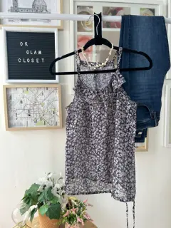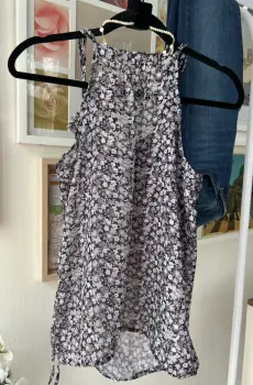 Blusa sexy Jns estampada, tirantes, tela delgada no strech en colores blanco, gris y negro como se muestra en la foto