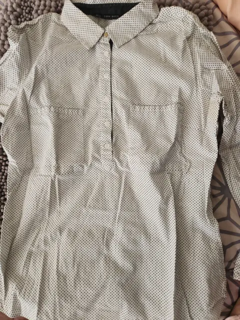 Blusa blanca, talla Mediana, manga larga, botones al frente, marca Zara, usada en buenas condiciones